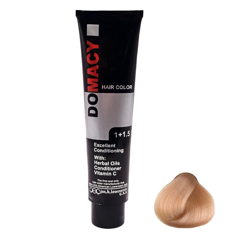 رنگ مو دوماسی شماره 12.1 حجم 120 میلی لیتر رنگ بلوند دودی خیلی روشن به همراه اکسیدان کد 02 نه درصدی حجم 180 میلی لیتر