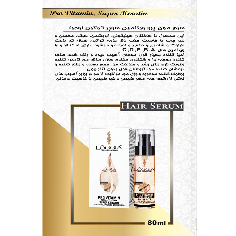 این محصول با ساختاری سیلیکونی، ابریشمی، سبک، مخملی و غیر چرب با خاصیت جذب بالا، حاوی کراتین فعال که باعث طراوت و شادابی مو می شود و دارای امگا ۳ و ۹،ویتامین های A,B,E,D,C و همینطور احیا کننده بسیار قوی موهای آسیب دیده و رنگ شده، صاف کننده موهای وز و شکننده، مقاوم سازی ساقه مو، تامین کننده رطوبت لازم برای رشد و حفاظت مو، حجم دهنده و براق کننده و درخشان کننده مو، آبرسانی قوی بدون آثار چربی ,برطرف کننده موخوره و وزی مو، مراقبت از مو در برابر آسیب های ناشی از اشعه مضر طبیعی و غیر طبیعی می باشد.