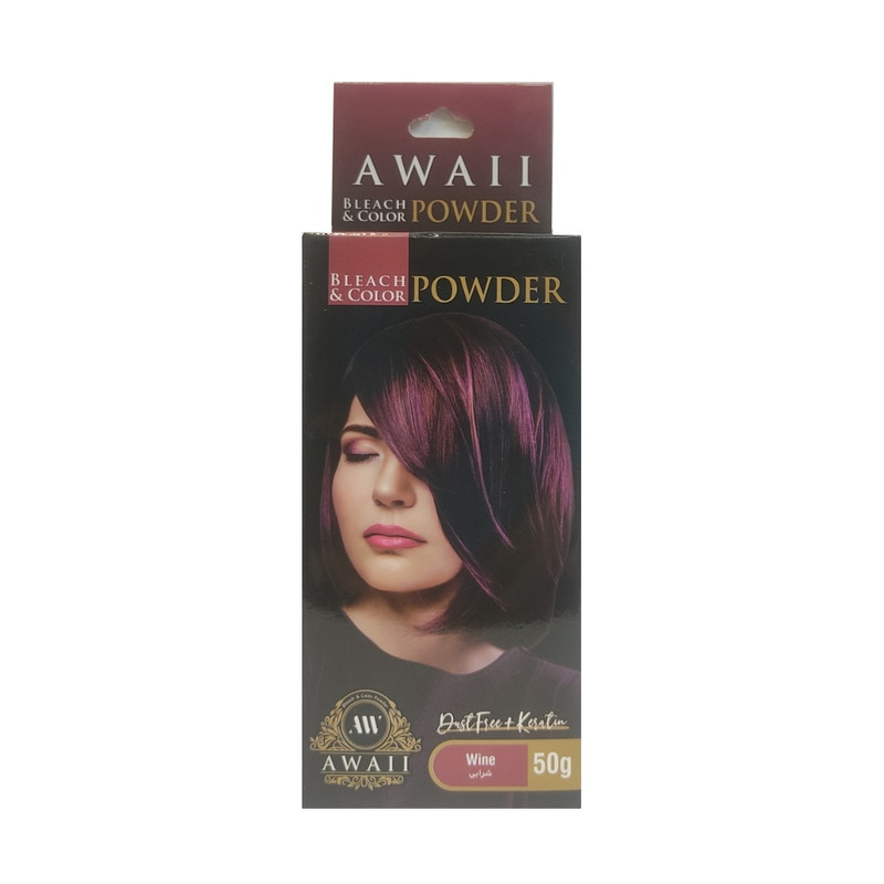 پودر دکلره رنگی آوایی awaii رنگ شرابی فانتزی استاندارد و دارای عصاره برگ آلوئه ورا و قوی با ماندگاری بالا و قیمت مناسب که کیفیت و قیمت مناسب آن بسیار آن را محبوب ساخته است.