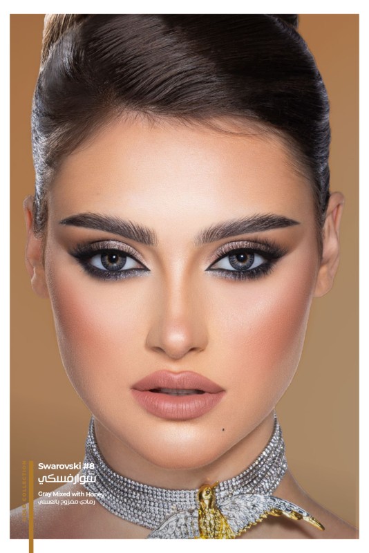 لنز فصلی دهب مدل سوارفسکی کد 8 رنگ طوسی عسلی دور دار