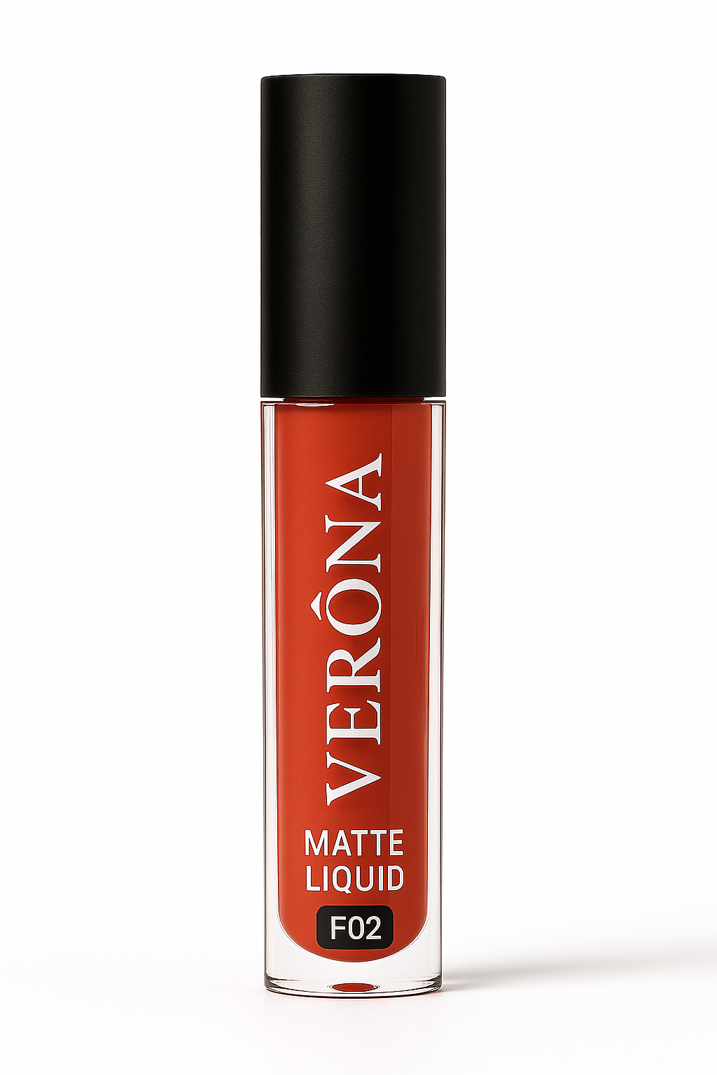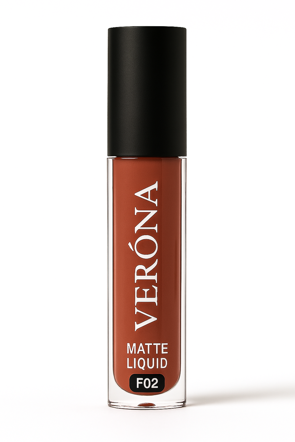 رنگ شماره F02 از رژ لبهای ورونا، یک رنگ آجری خاکی مات است که جلوهای گرم، طبیعی و شیک به لبها میبخشد.